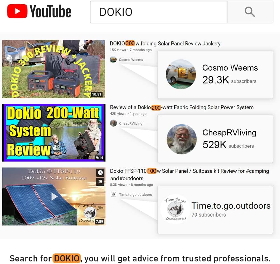 DOKIO 300W Portable Foldable Solar Panel Kit (21x40in, 17lb), with Separate Controller and Dual USB, Monocrystalline Charger for 12V Batteries, Power Stations, RV Camping Emergency Use
