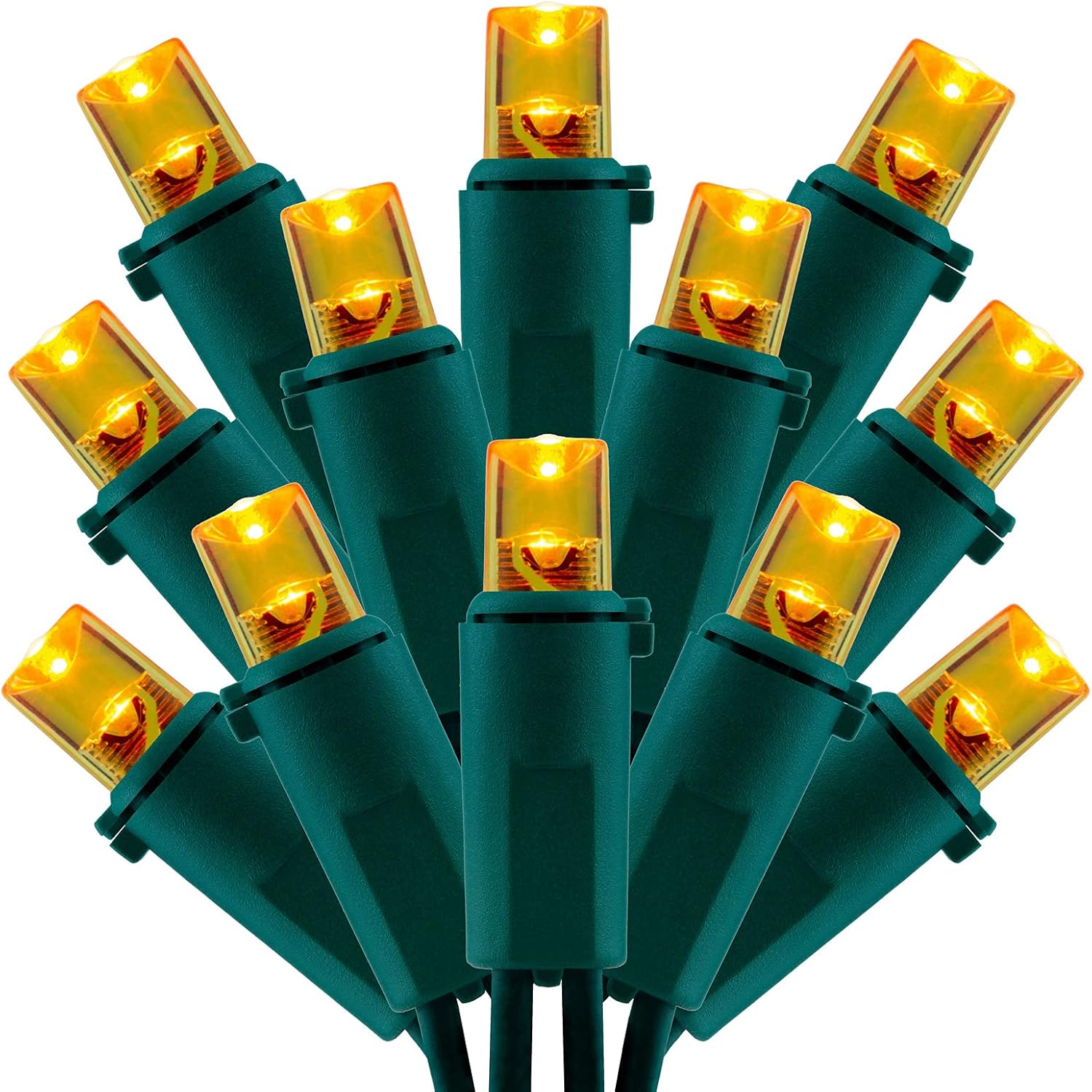 200 Count Orange Wide Angle LED Christmas Lights, 66 ft Green Wire UL Certified Commercial Grade 5mm Holiday String Light Set (Orange)