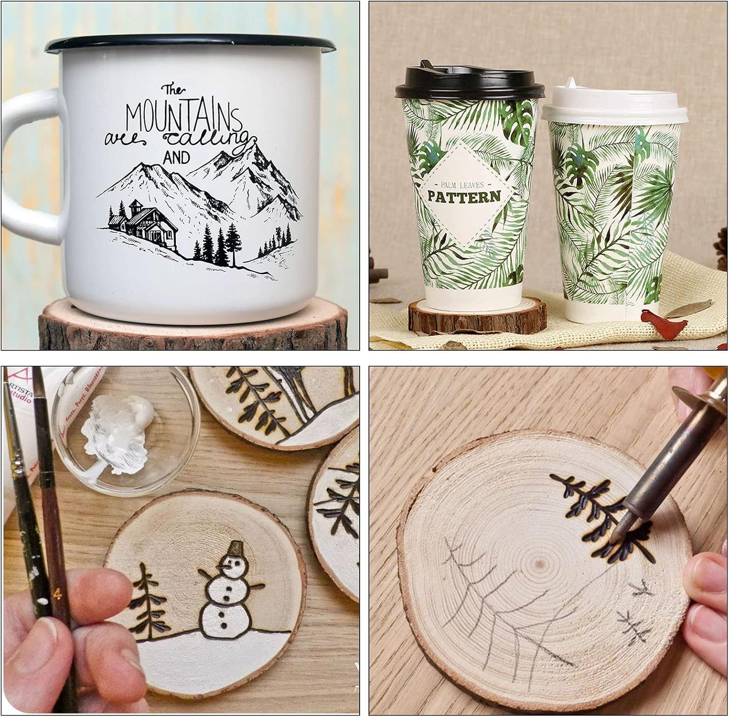 - PERFECT FOR CRAFTS - These natural wood coasters are great for DIY crafts projects since they are easy to color, glue, and carve. Each wood slice has its unique wood grain and texture shape. You can paint them with watercolors, colored pencils, pens and acrylic paints. Or you can make these wood discs into little pendants for decoration