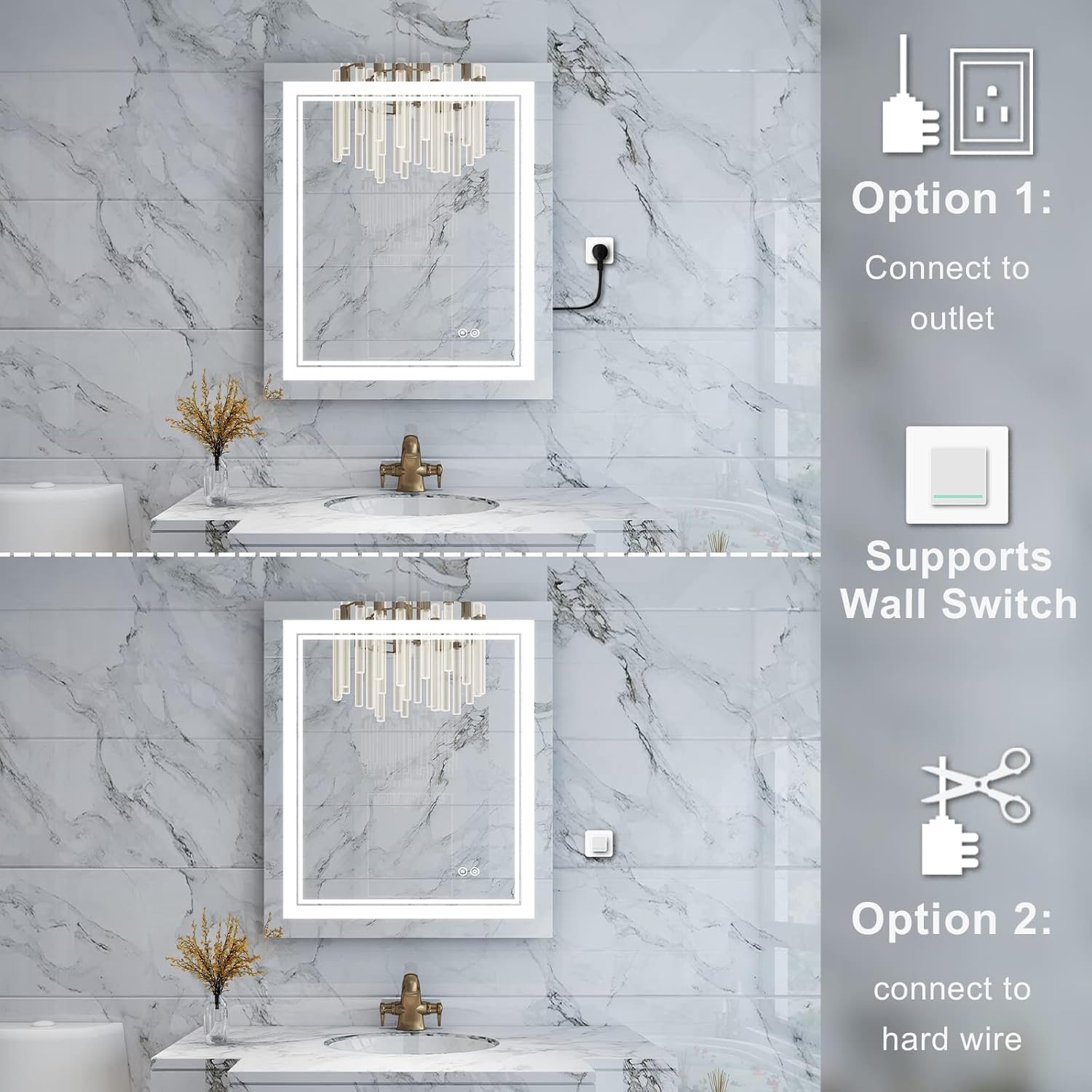 - Independent Function Switch: Power switch and anti-fog switch are separate control. Our lighted bathroom mirror use 5mm waterproof copper free clear silver coated mirror glass, which is not easy to break. Meanwhile, the led mirror use anodized aluminum construction with durable waterproof, which is IP44 rated for safe use in damp bathroom.