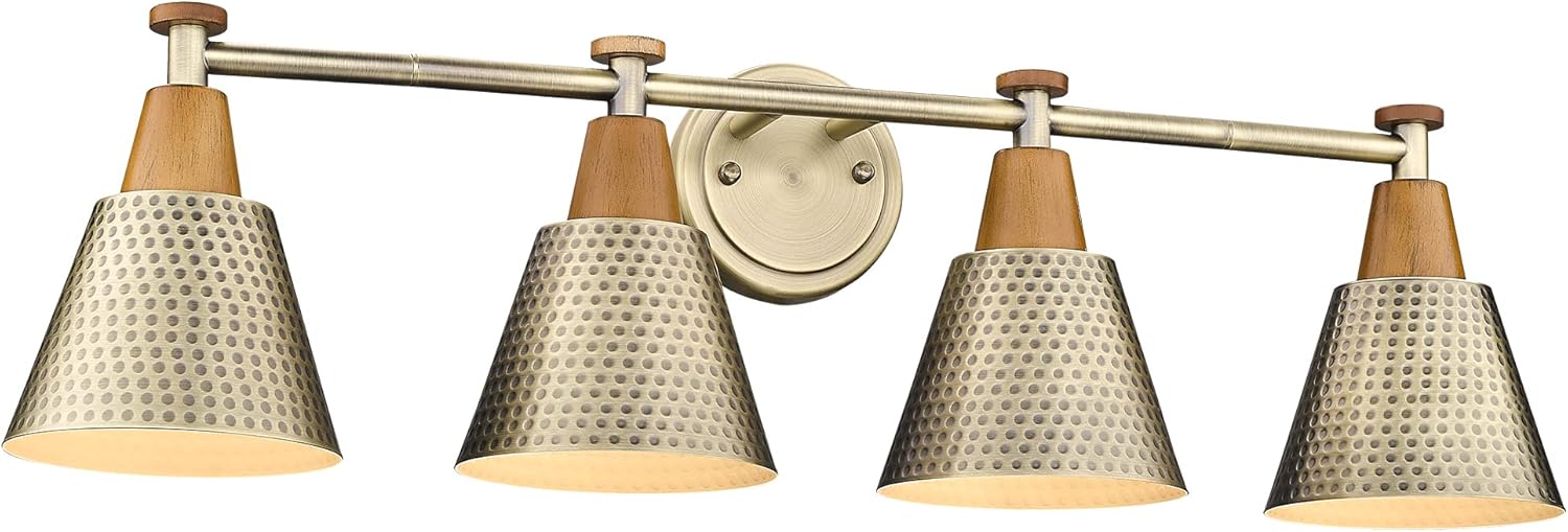 FEMILA Vanity Lights, 4-Lights Bathroom Light Fixtures Over Mirror, Antique Brass Wall Sconces Lamp with Hammered Metal Shade Finish, 4FG59B-4W BG
