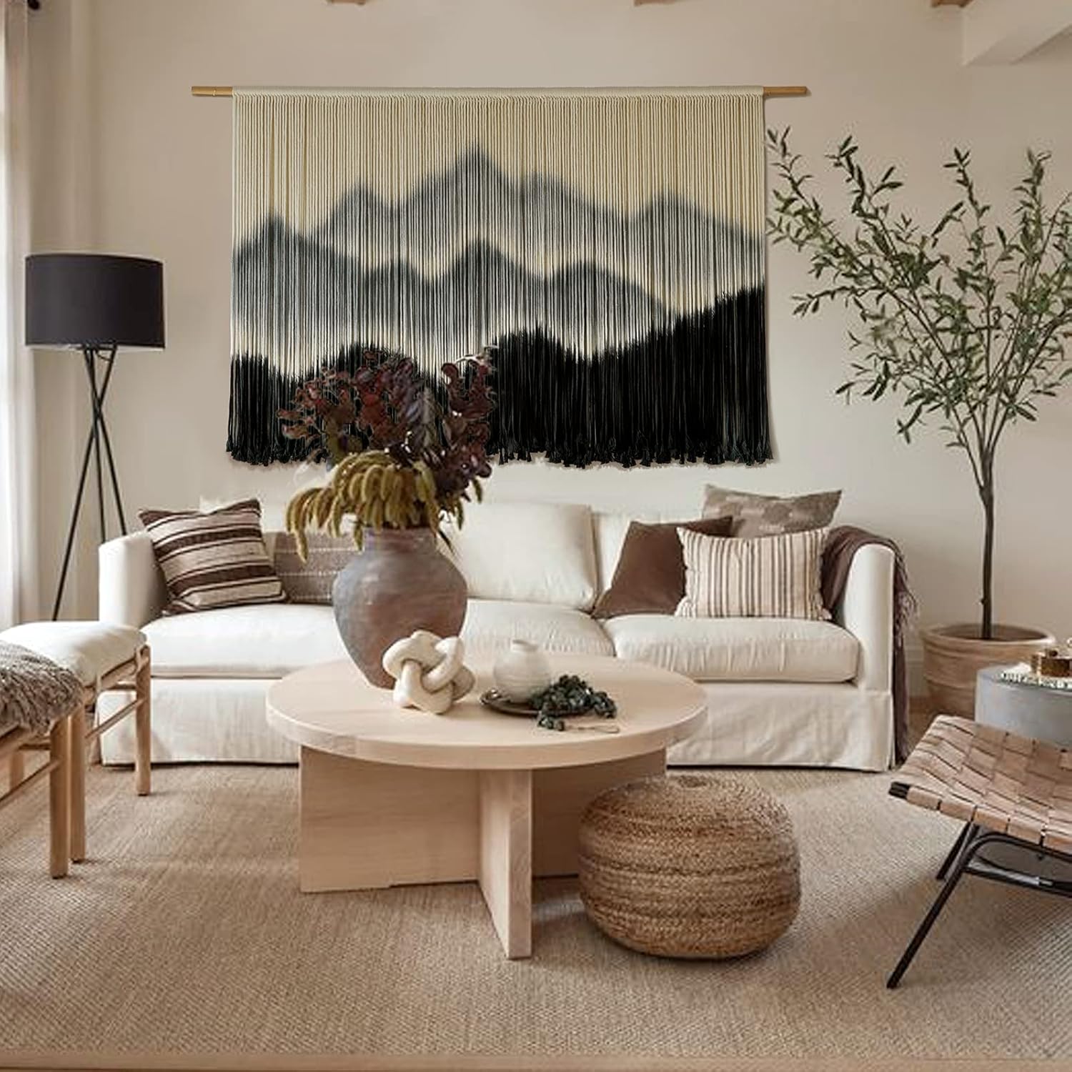 IOWER Macrame Wall Hanging Mountain Dip-Dyed Macrame Wall Decor Large Modern Fiber Art Boho Wall Decor 57" Wx35 L