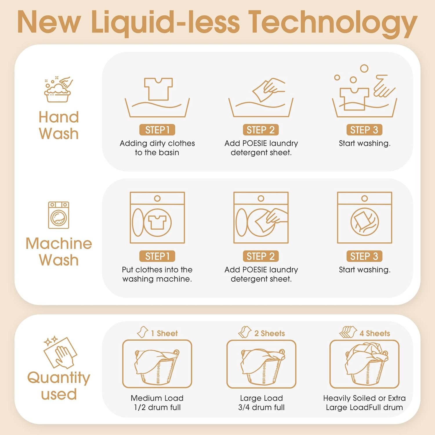 - Effortless Cleaning - Our liquidless detergent sheets are designed to make laundry day a breeze. No more measuring or pouring, just toss in the sheet and let it do the work. Bringing you the perfect laundry experience
