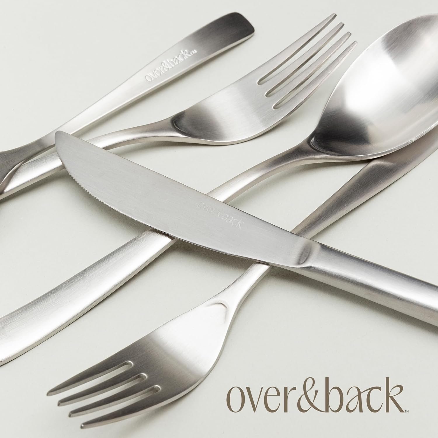 over&back 20pc Curved Flatware Cutlery Set - Comes with 4 Dinner Forks, 4 Salad Forks, 4 Dinner Knives, 4 Dinner Spoons, and 4 Teaspoons - 18/8 Stainless Steel - Dishwasher-Safe - Brushed Stainless