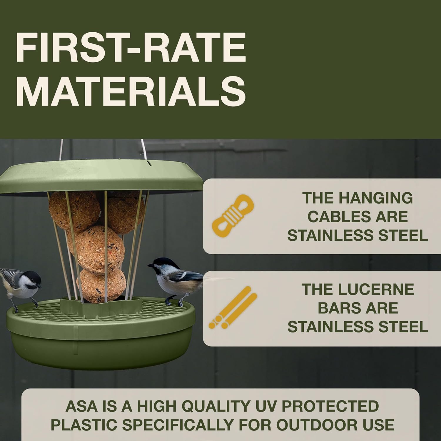 - 🛡️ WEATHER-RESISTANT BUILD: Made from UV-resistant ASA plastic and rustproof stainless steel rods & cable for reliable – ensures long-lasting use through all seasons.