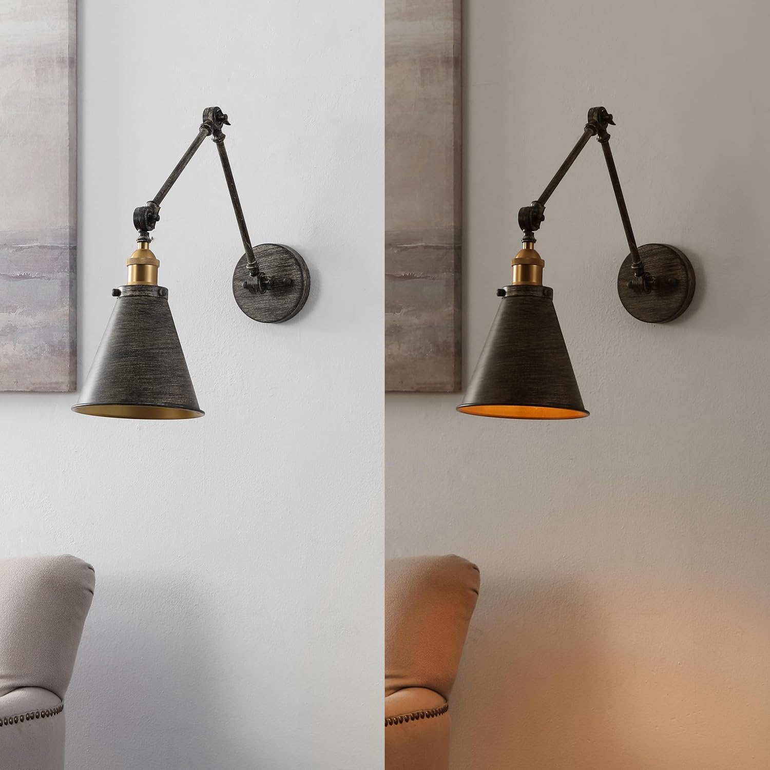 JONATHAN Y JYL7462D Rover 7" Classic Industrial Metal Adjustable Arm LED Wall Sconce, Rustic Dark Gray/Brass Gold for Bedroom, Bathroom, Vanity