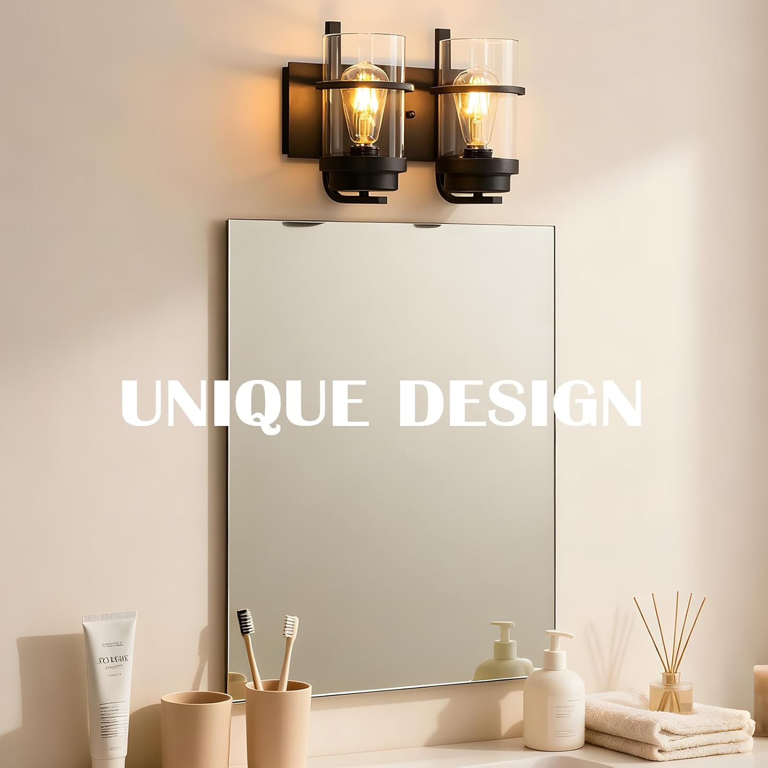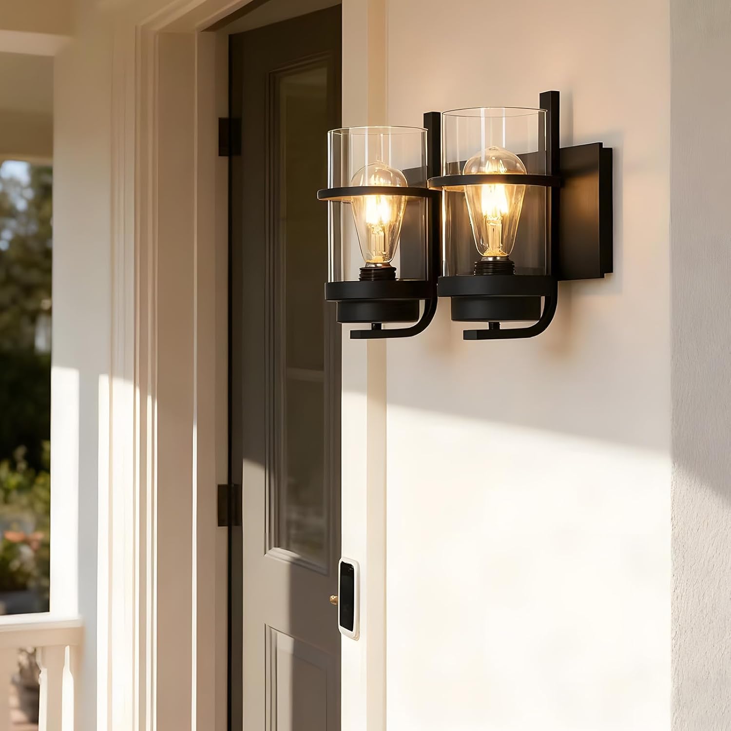 - Product Feature: Hardwired.Matte black bathroom light fixture with clear glass shade;Rustic Wall Sconce lighting is easy to install and can be mounted as either up light or downlight.
