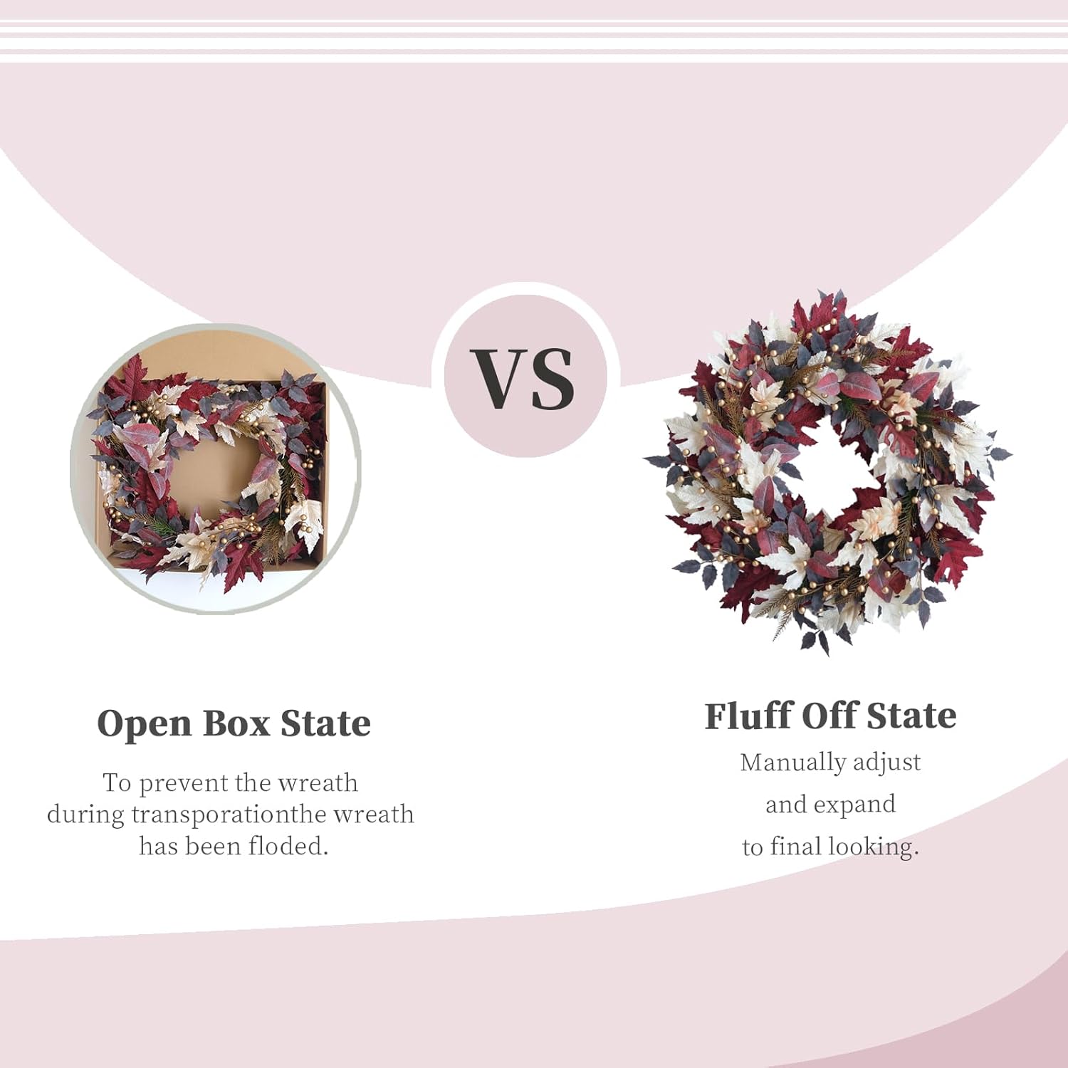 - Premium Materials: Carefully crafted with high-quality artificial maple leaves and decorative pearls arranged on a sturdy grapevine base for long-lasting beauty