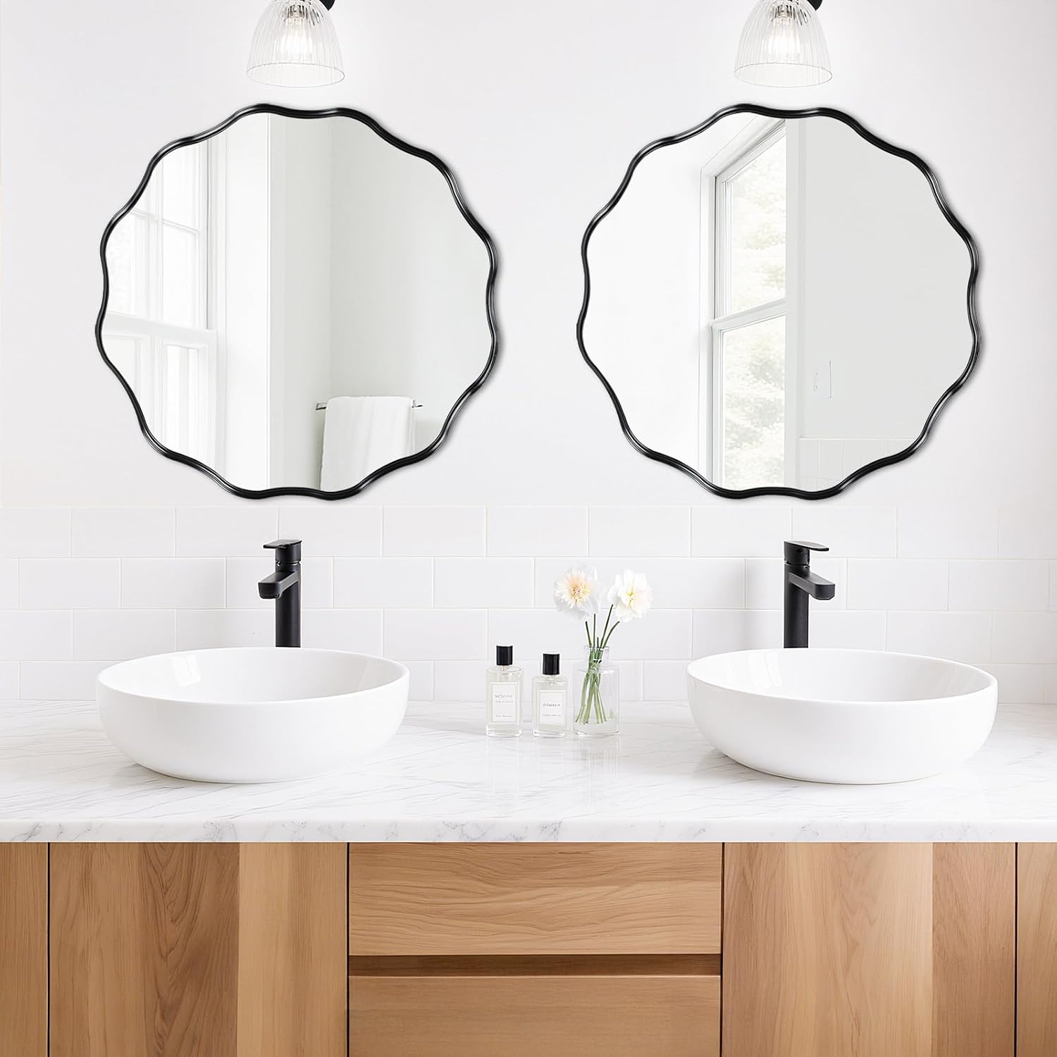 - Eyes-Catching Wavy Glam: Be the envy of your guests! Our bathroom mirror's wave-edge design creates mesmerizing light reflections, turning any blank wall into a stunning focal point with instant designer vibes