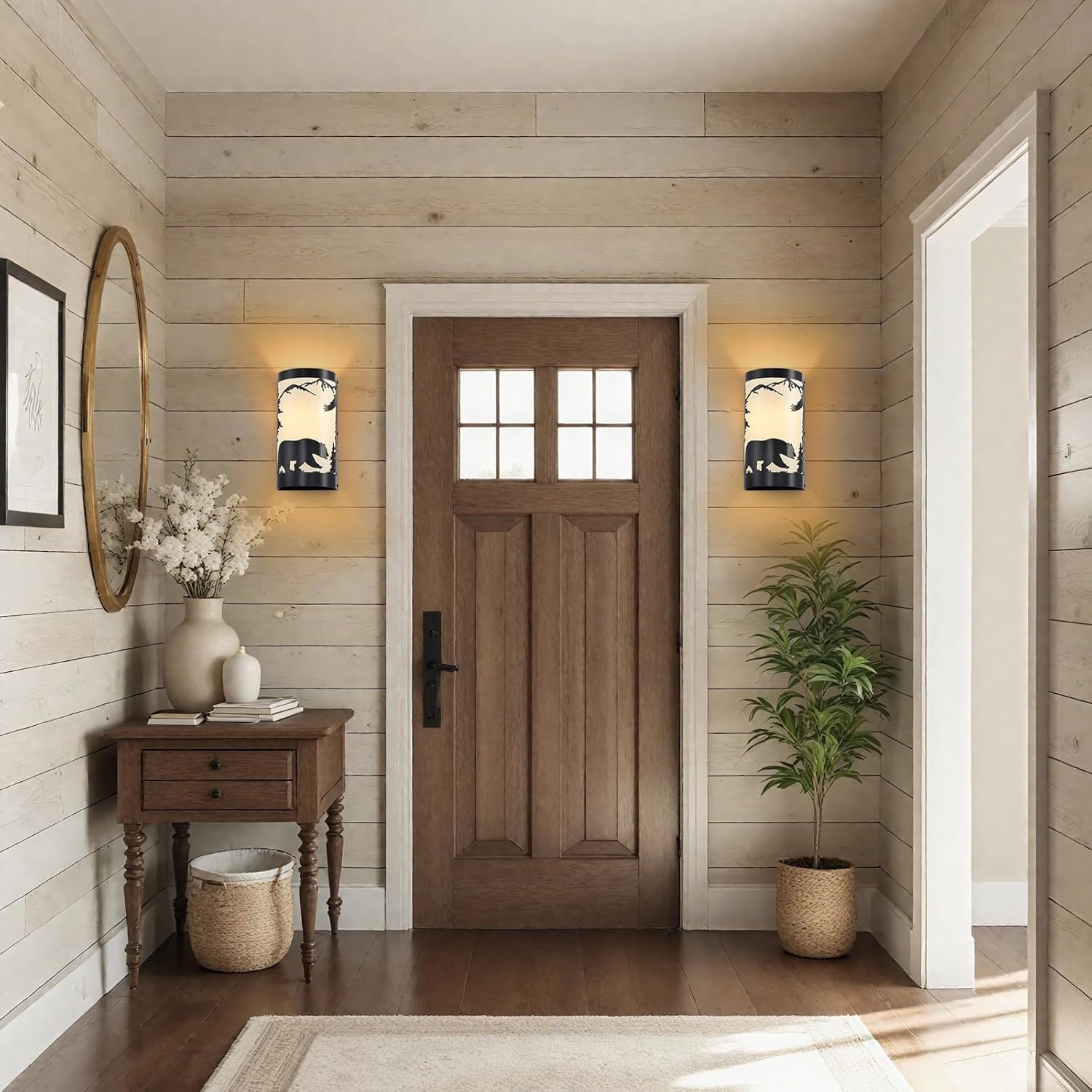 - Rustic Design: Black wall sconces is crafted from durable matte black metal,featuring intricate forest elements and a bear silhouette,white parchment paper adds a soft,warm glow,enhancing industrial aesthetic of the vintage wall sconce