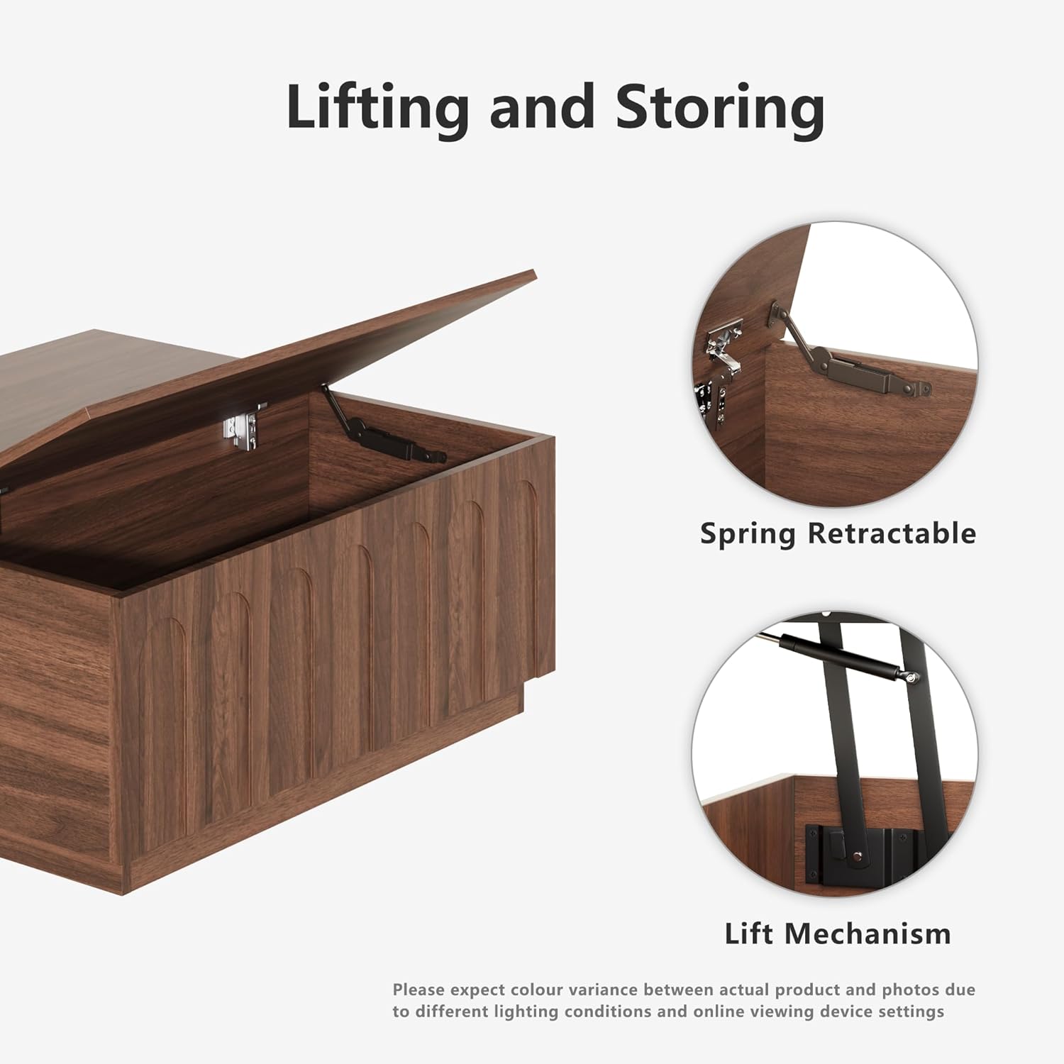 Lift Top Coffee Table with Storage, Mid Century Modern Coffee Table with Arched Design, 31.5" Square Tea Table with Wood Grain, Multifunctional Center Table for Living Room, Office, Walnut