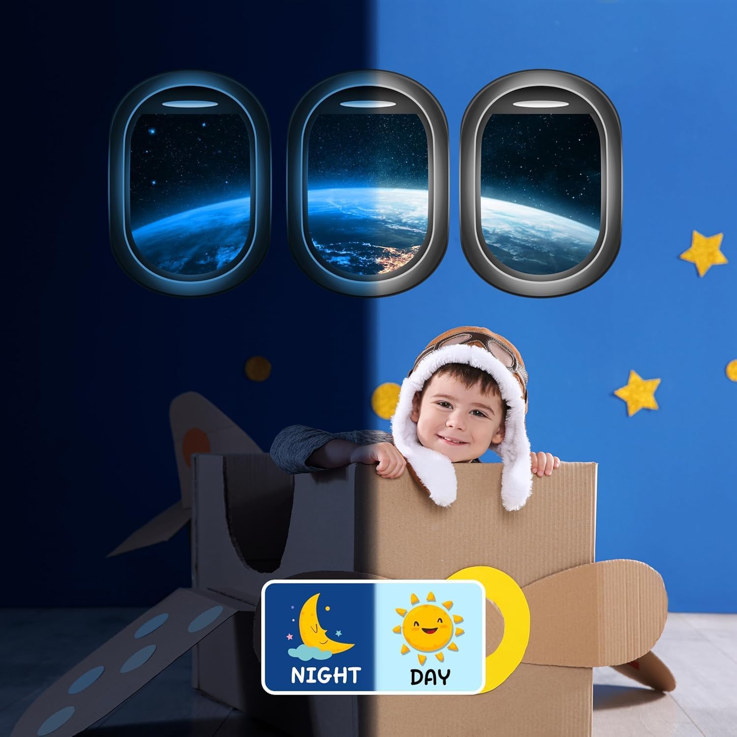 - Product Content : A set of 3 glow - in - the - dark outer space window stickers. Each sticker measures 8.26x11.6 inches.featuring a variety of space elements like Earth, Galaxy, meteors.